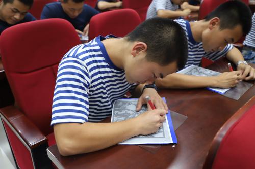 活动特别邀请新北区刻纸传承人、河海老年学校执行校长殷明欣以及他的团队成员,他们带来了30副精心制作的刻纸作品,带着在场的官兵细细品味分寸之间、细腻之处的刻纸艺术。随后,殷校长带领官兵们一起刻纸。每位兵哥哥一边认真听讲解,一边认真刻起来。他们聚精会神、细心努力的样子深深地感染着大家。随后,一幅幅完整精美作品陆续完成。
