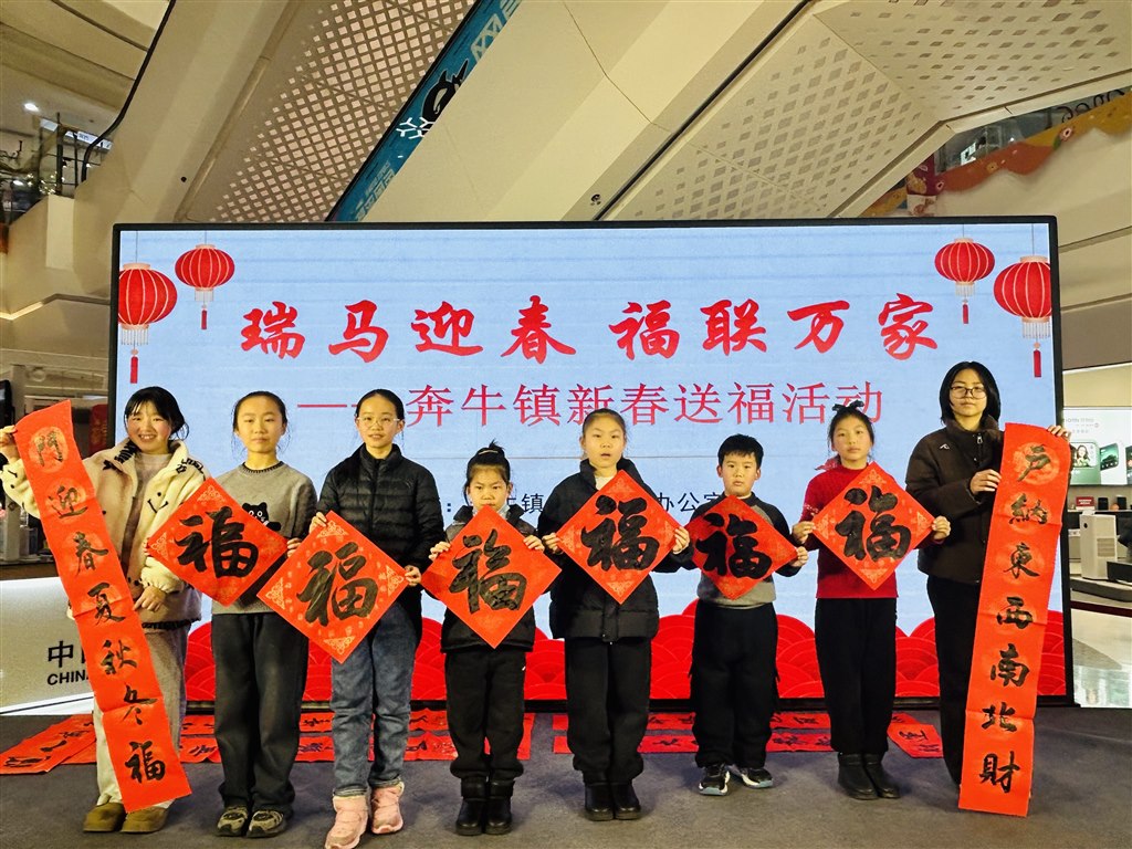 寒冬腊月年味浓,福联送暖入千家。为营造喜庆、祥和的春节氛围,弘扬中华传统文化,让大家提前感受年味儿,2月5日晚,奔牛镇社会事务办公室联合九里小学、镇书画协会在嘉宏奔牛星光城开展了“瑞马迎春 福联万家”新春送福活动。